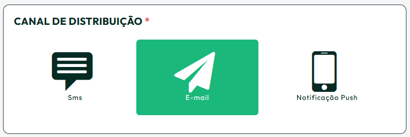 Na opção "Canal de Distribuição", selecione a opção: Email