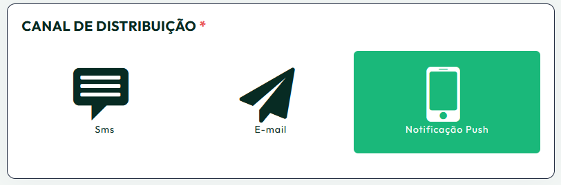 Na opção "Canal de Distribuição", selecione a opção: Push Notification
