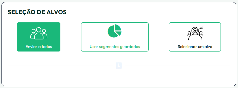 Seguidamente indique se pretende enviar a todos os seus contactos/clientes ou se pretende escolher um publico alvo especifico através dos filtros disponíveis (opção "Selecionar um Alvo")