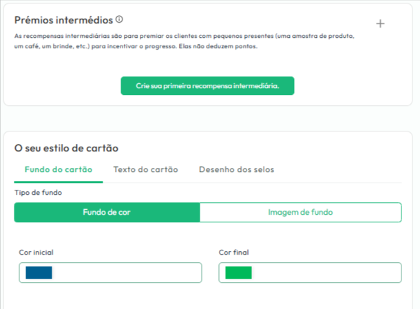 Poderá criar mais recompensas para os seus clientes no menu "Prémios Intermédios";