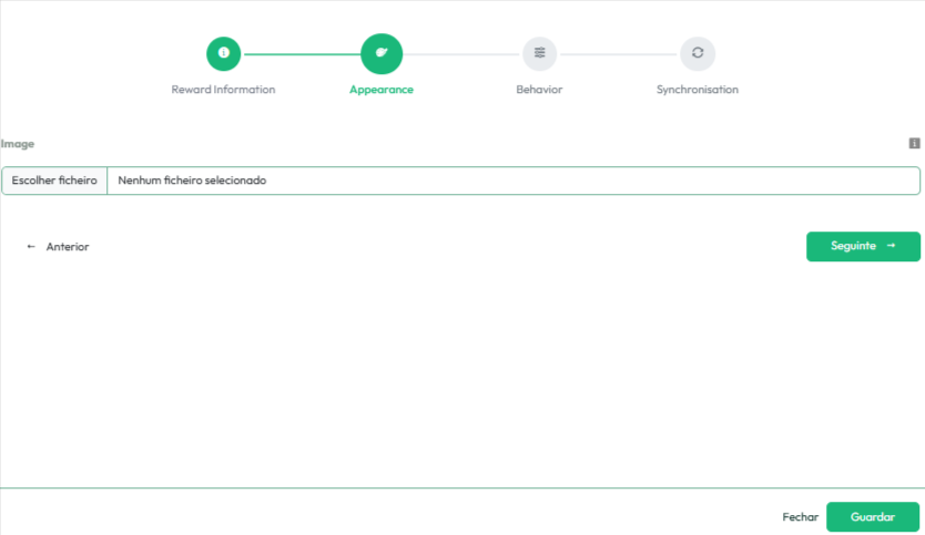 Preencha os vários campos disponíbilizados para um maior detalhe dos seus prémios, como por exemplo um nome e breve descrição;