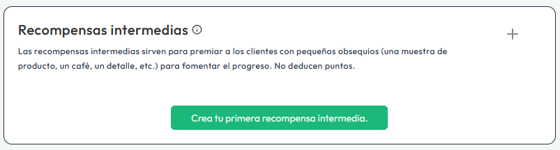 Puedes crear más recompensas para tus clientes en el menú "Premios Intermedios"