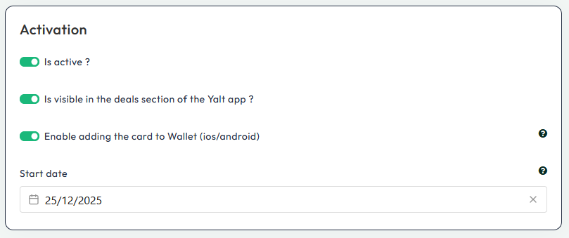 In the "Activation" menu, select all the options you want to activate for your Loyalty Program.