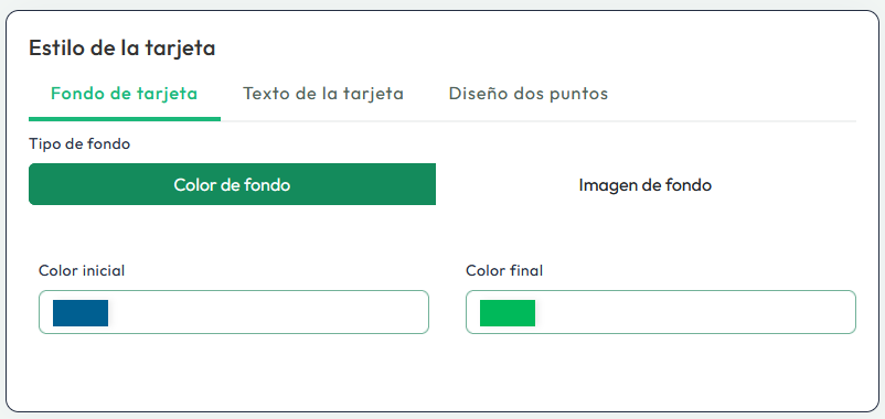 A continuación, podrás definir los colores de tu tarjeta digital, incluyendo colores, logo o imagen, que serán visibles en la app Yalt