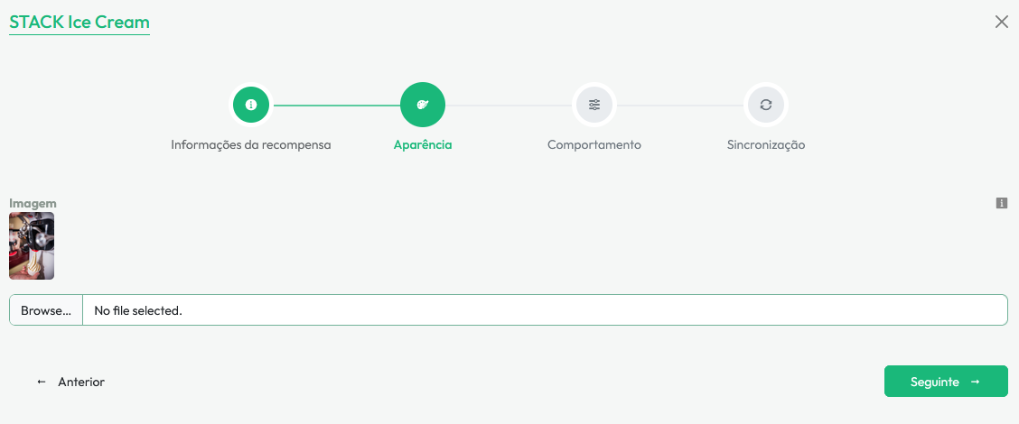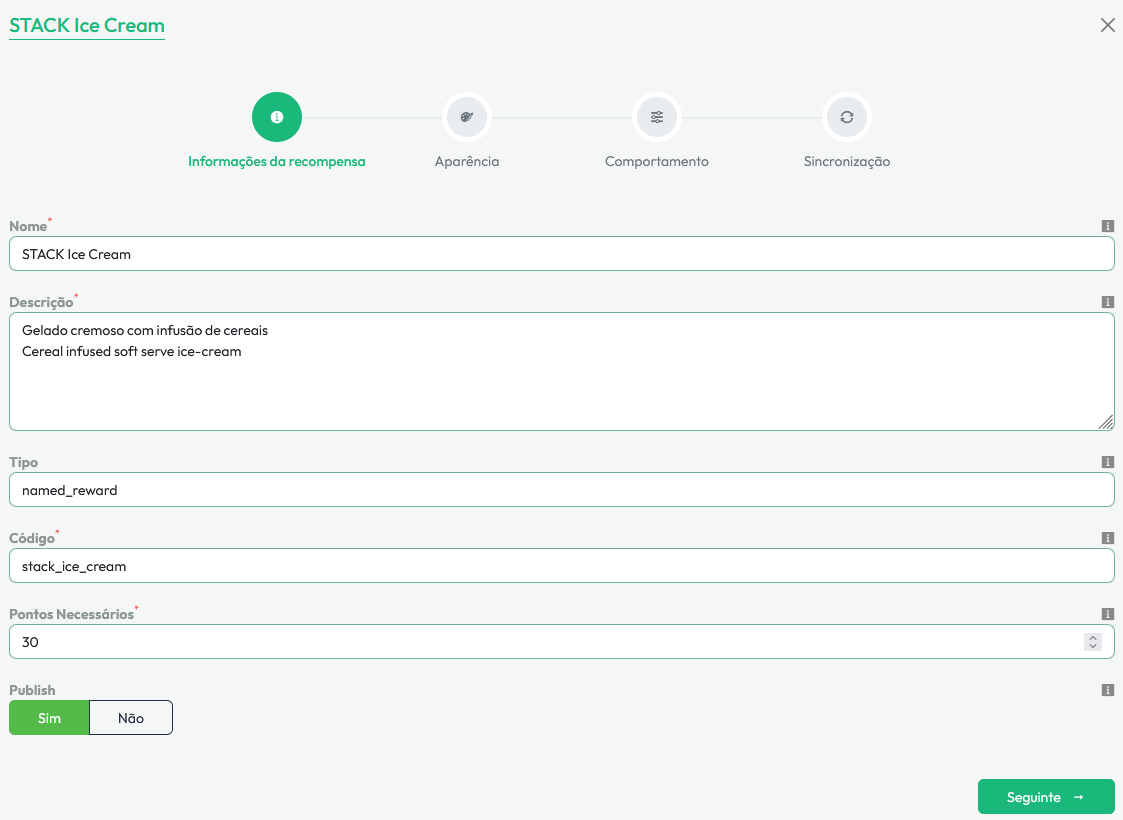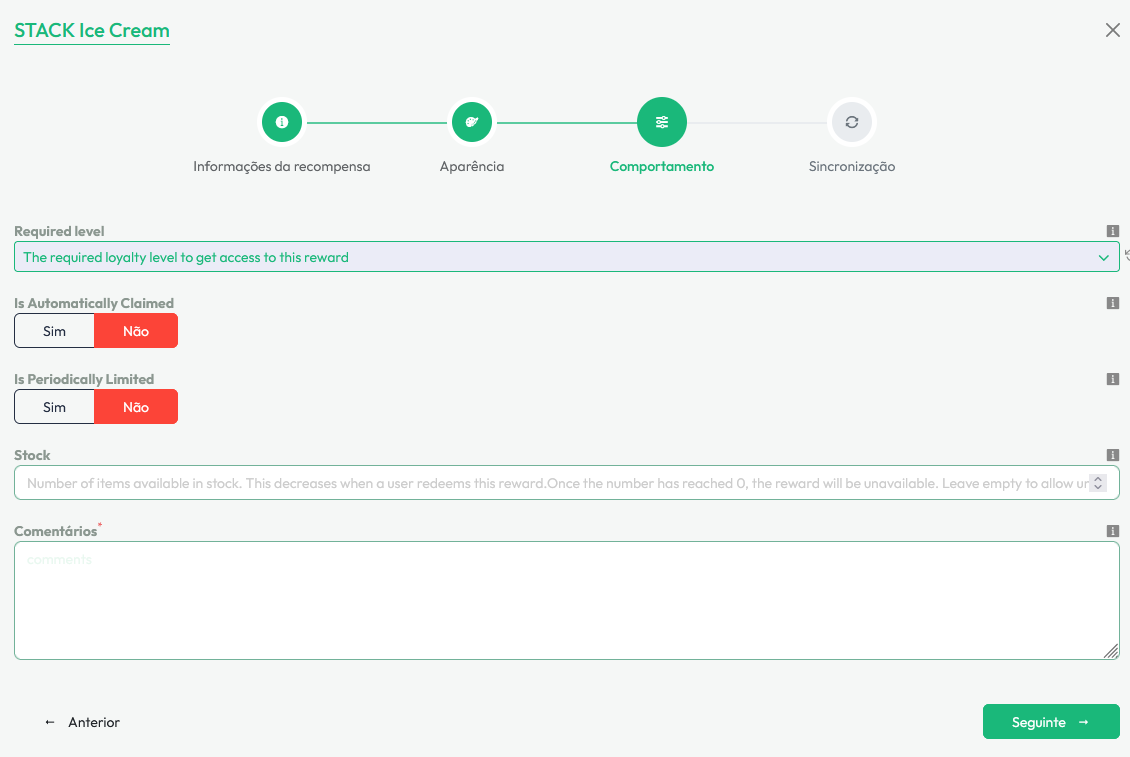 Preencha os vários campos disponíveis para um maior detalhe dos seus prémios, como por exemplo um Nome e uma Descrição