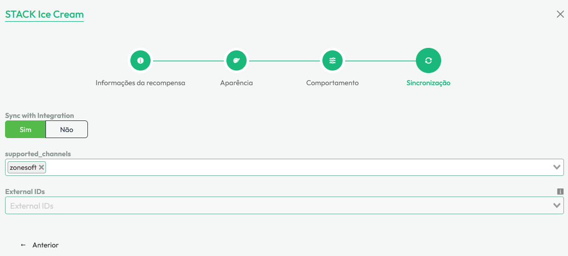 Por fim, indique se pretende que a sua loja esteja sincronizada com a integração do seu POS