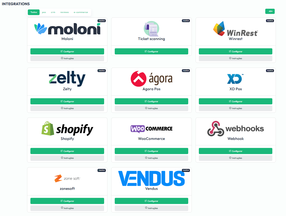 En el menú "Integraciones", puedes ver todas tus opciones disponibles y elegir la que te gustaría configurar.