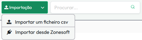 Poderá fazer a importação dos mesmos de um base de dados externa ao clicar na opção "Importação"