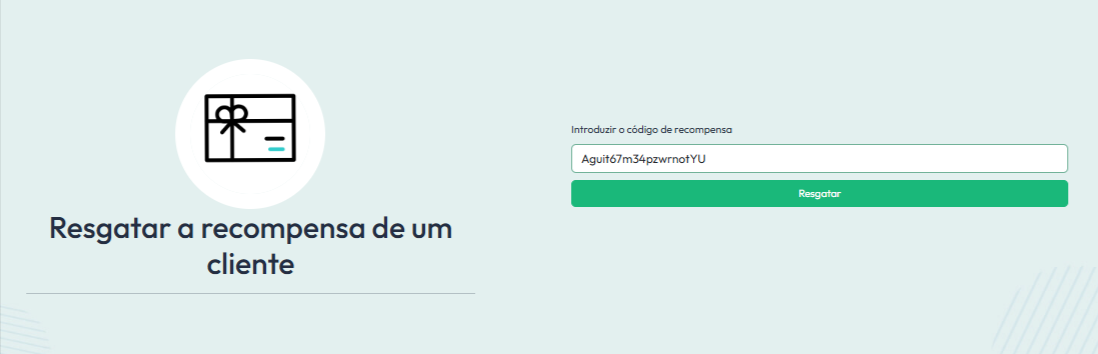 Selecione o menu "Resgatar a recompensa de um cliente"