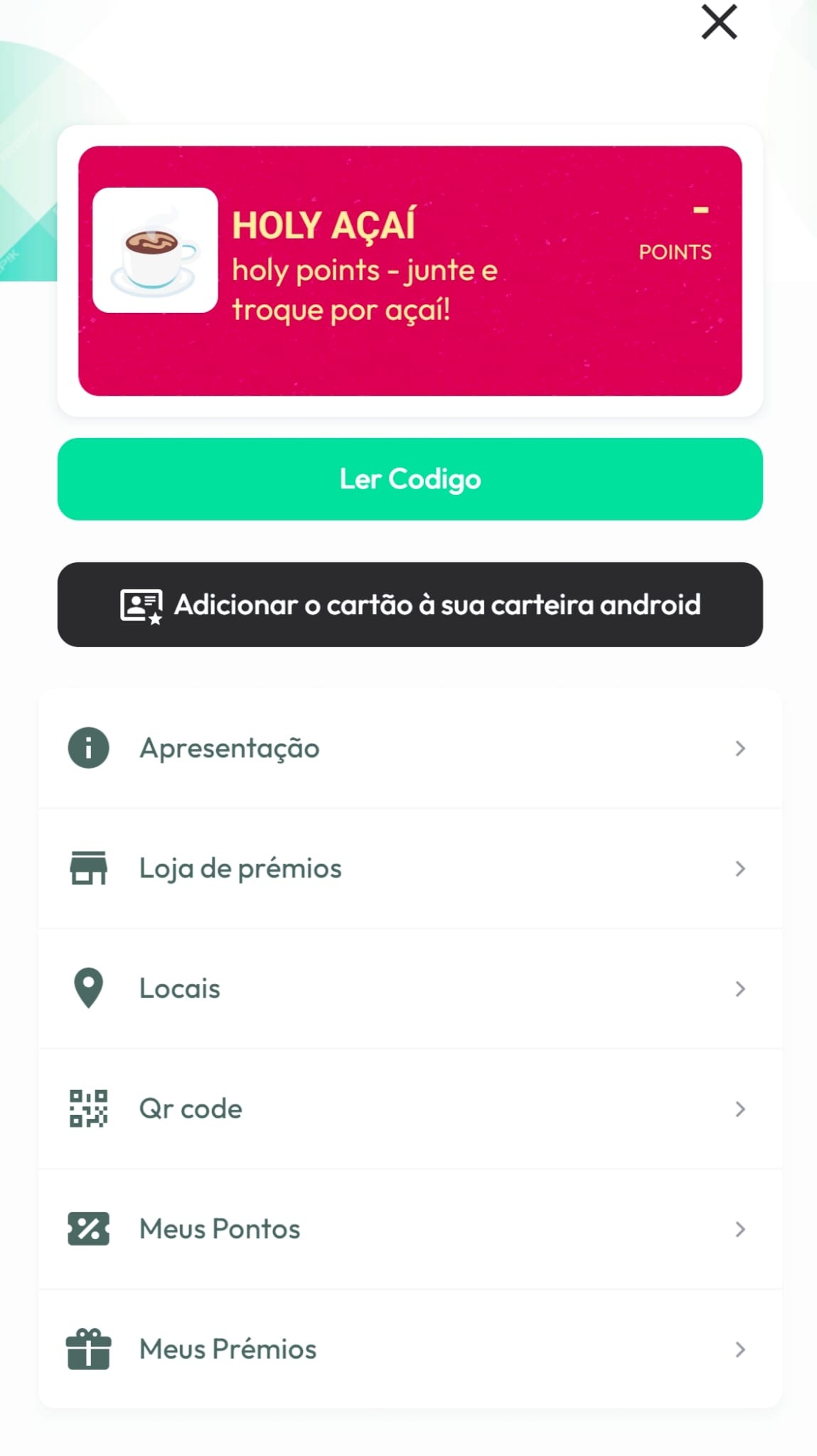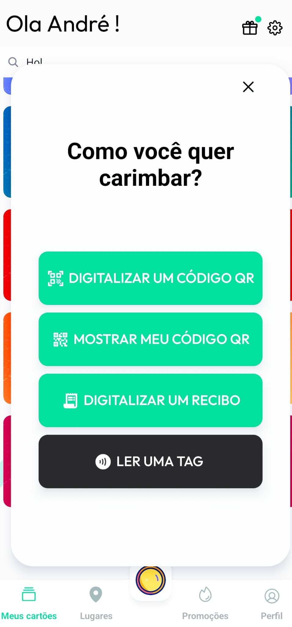 Após a emissão do recibo de compra, o cliente deverá abrir a app Yalt e selecionar o cartão virtual correspondente á loja