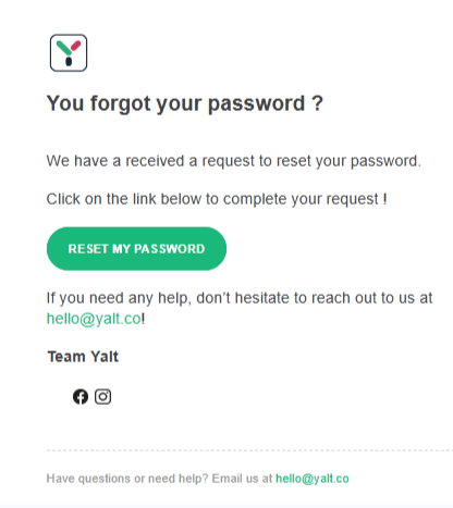 Introduce la dirección de correo electrónico asociada a tu registro en Yalt y haz clic en "Enviar"