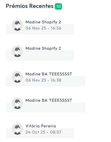 E também validar os prémios redimidos mais recentemente pelos seus clientes