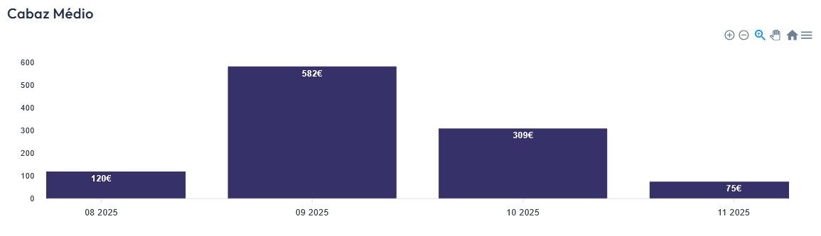 No tabuleiro "Perspetivas" poderá uma visão gráfica de várias métricas como por exemplo o número de transações dárias