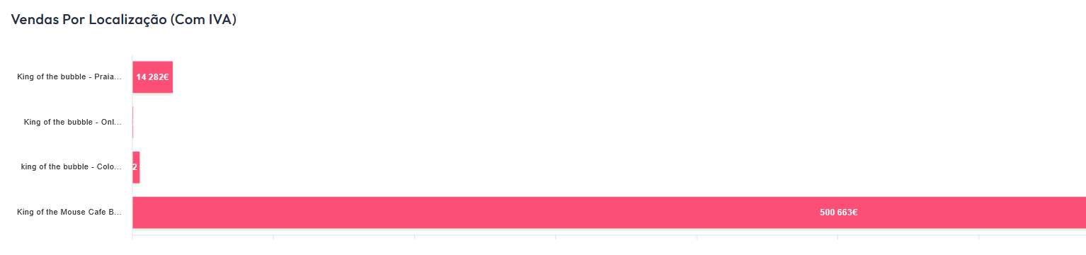 No tabuleiro "vendas" pode verificar com facilidade qual o volume de faturação de todas as lojas da sua cadeia