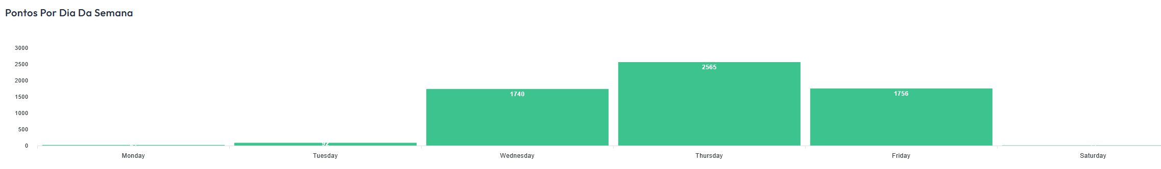No tabuleiro "Pontos e prémios" poderá analisar quantos pontos estão a ser acumulados pelos seus clientes cada dia da semana