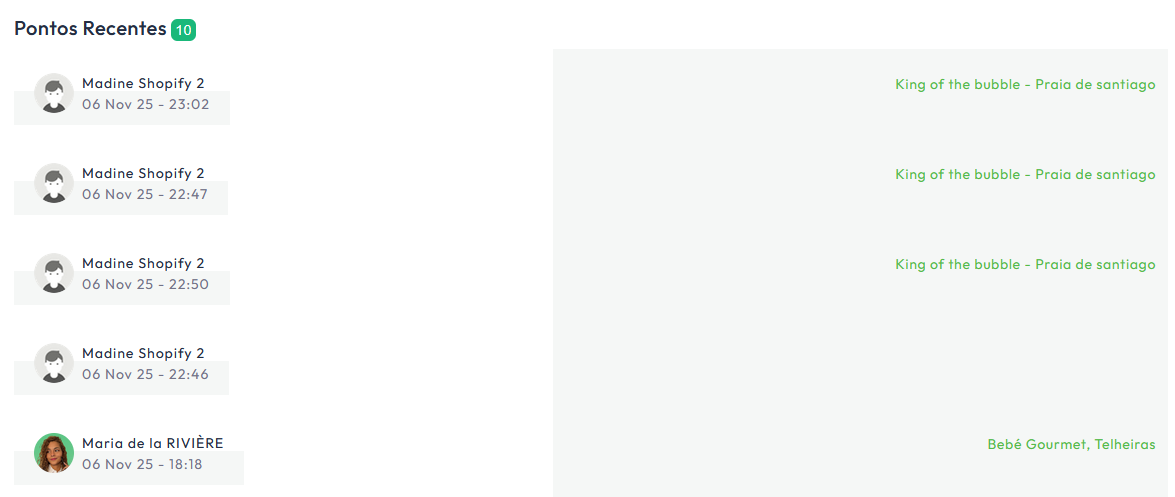 Verificar quais os clientes que receberam pontos recentemente