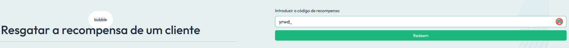 Caso o código esteja válido, irá aparecer a informação de validação assim como o conteúdo da recompensa e a partir desse momento o prémio é dado como redimido para o cliente