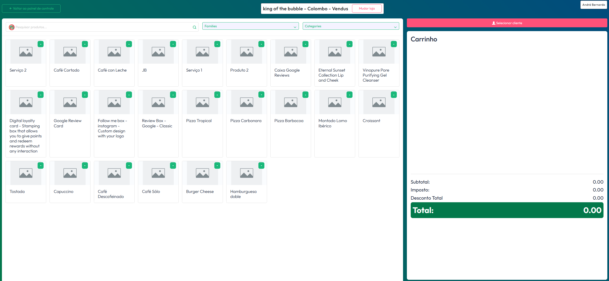 Seguidamente terá ao dispor a sua loja virtual onde poderá executar vendas virtualmente de forma a aplicar rapidamente o seu plano de fidelização aos clientes