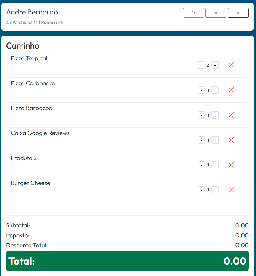 Poderá adicionar uma ficha de cliente ao PDV clicando no botão vermelho "Selecionar Cliente"