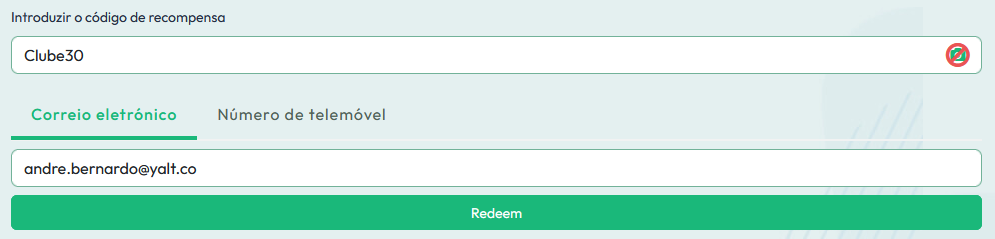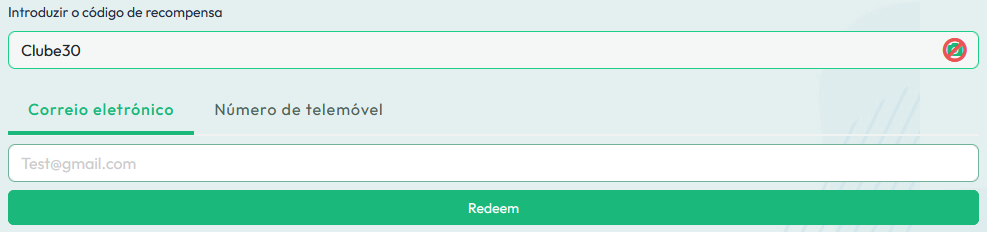 Poderá validar se o código é válido para o cliente através do seu e-mail